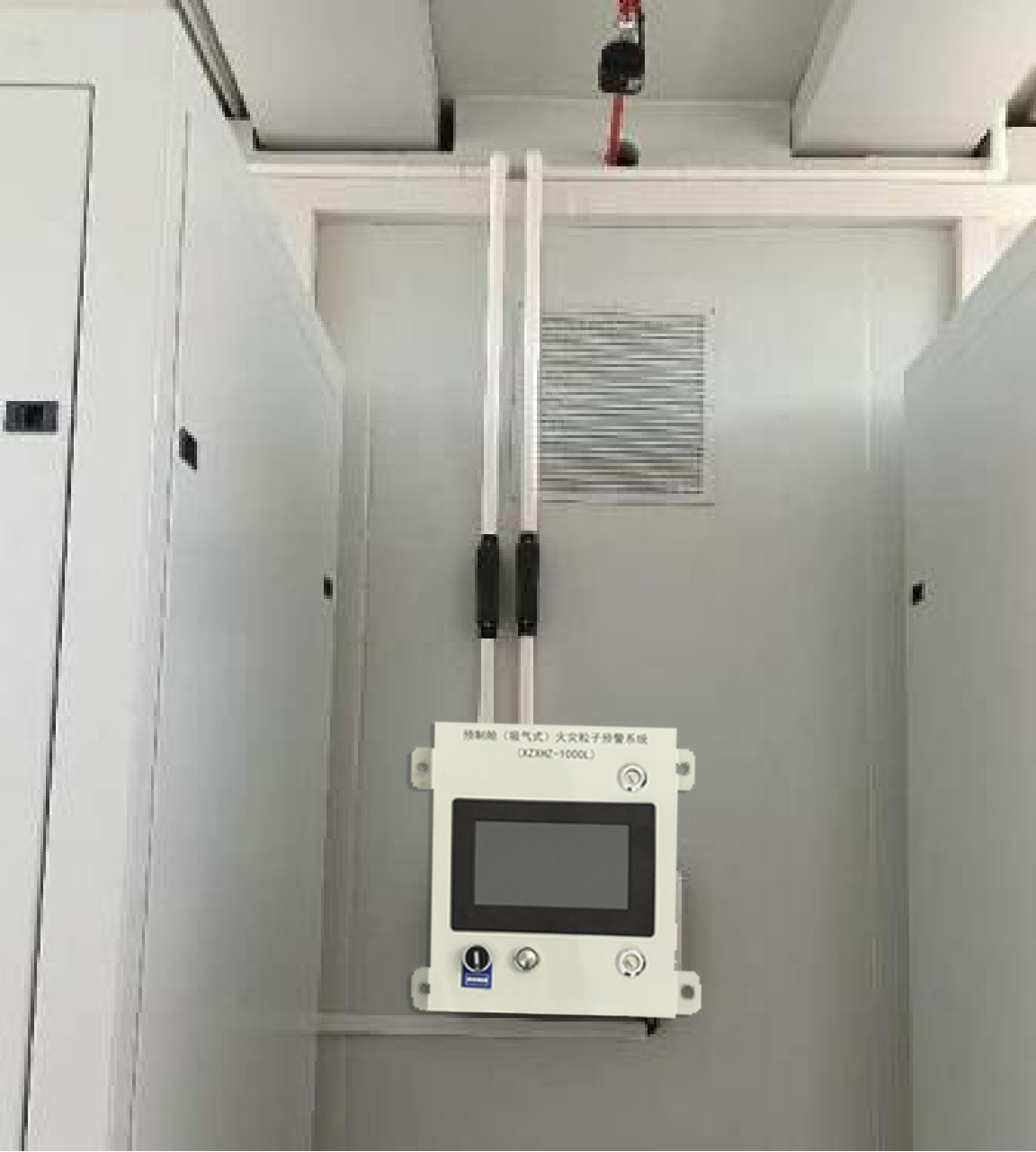 系统由热解粒子探测器、空气采集管、过滤器、弯头等配件组成,通过采集空气中粒子、环境温度、烟雾、气体一氧化碳、氢气(可选配),上传至BMS系统,经交换机再汇总至EMS系统。