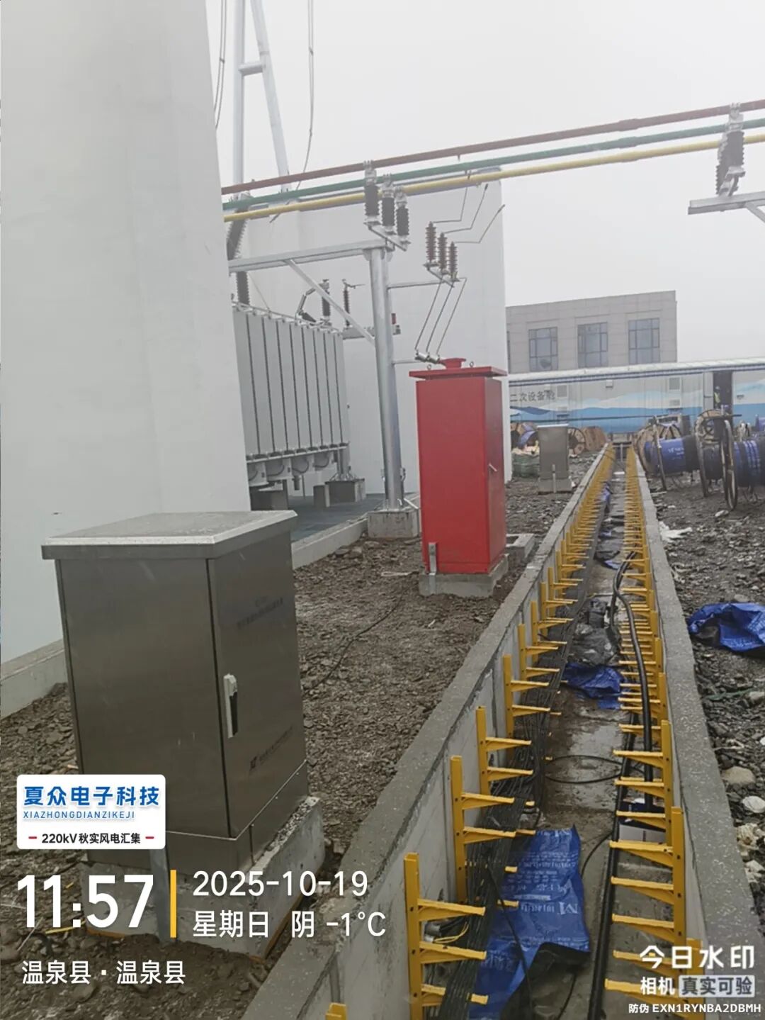 温泉县西部卡昝风区,风能资源丰富,是建设风电项目的理想场所。10月的季节,工人们顶着-1℃的低温,在220kV升压汇集站施工现场紧张作业。
