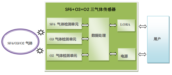 图 1 SF6+O3+O2 三气体传感器产品结构框图