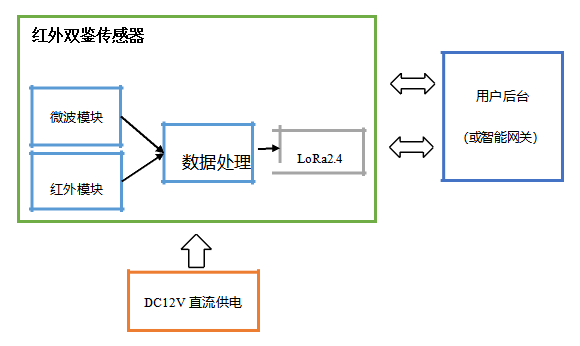 红外双鉴传感器采用了微波和被动红外的探测技术,是一款用于实时检测探测范围内是否存在区域入侵的传感器,主要针对人员的入侵。该型传感器一般安装于站房内门框一侧,通过无线信号传输实现实时上报,保证了站房内设备的安全。该型传感器采用了嵌入式MCU、高可靠性的设计,满足了各种工作环境;同时采用两种探测技术,保证了判断的准确性;采用 LORA 接口满足了系统组网的要求。