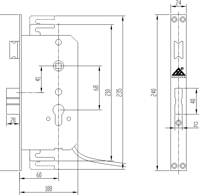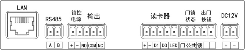 以上是无线只能门锁,下图是有线只能门锁,只多了左边的两个有线通讯端子,其它相同: