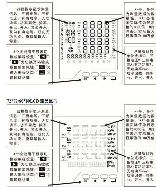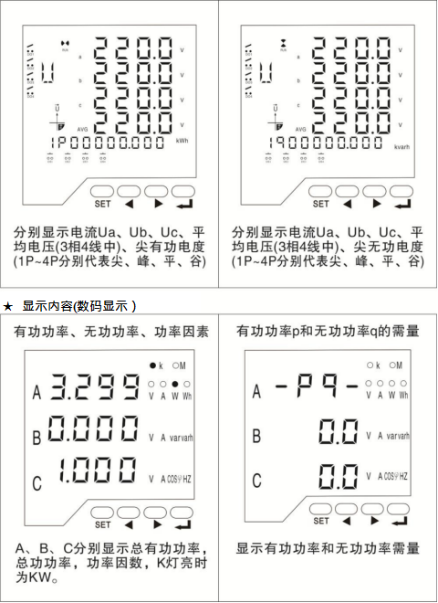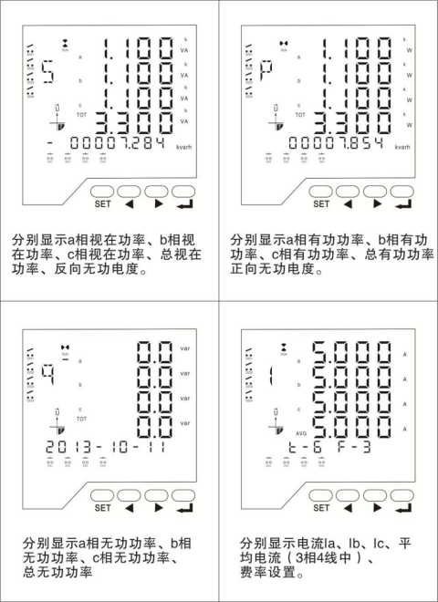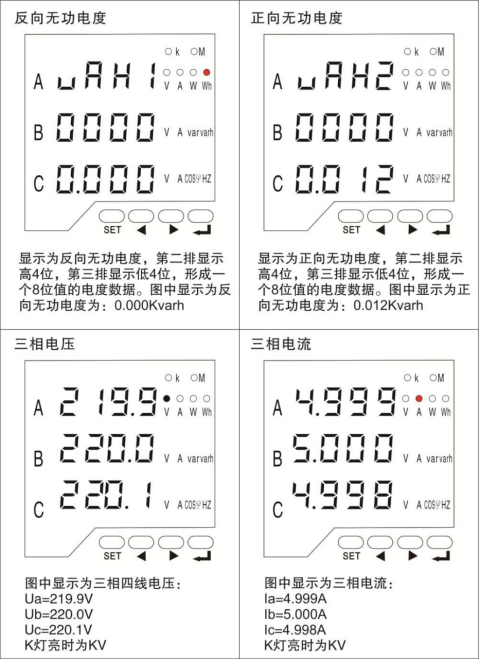 (e) 当前面显示三相的相电压时,同时按“←”键和“→”键,可以显示三相