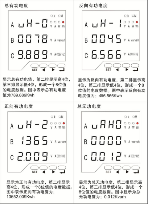 (c) 要确保输入电压、电流相对应,相序一致,方向一致,否则会出现数值和符号错误(功率和电能)!