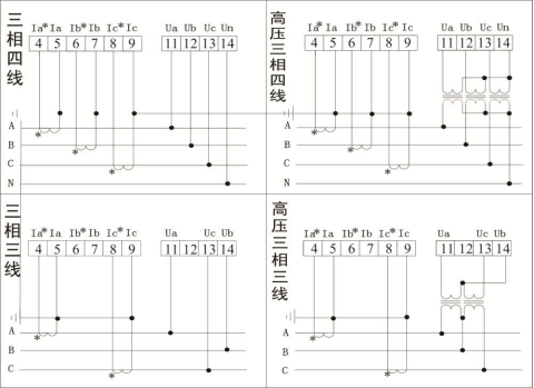 注意:仪表内可设置两种接线方式,实际接线方式和表内设置方式必须一致,否则仪表的测量数据不准确。
