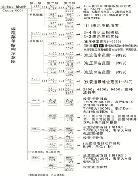 在编程状态下,数显界面采用分层结构的菜单方式,仪表提供三排或单排数宇显示: